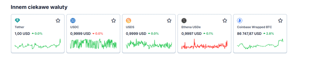 - Stablecoiny i transfery wartości – USDC i USDT funkcjonują również w sieci Solana.